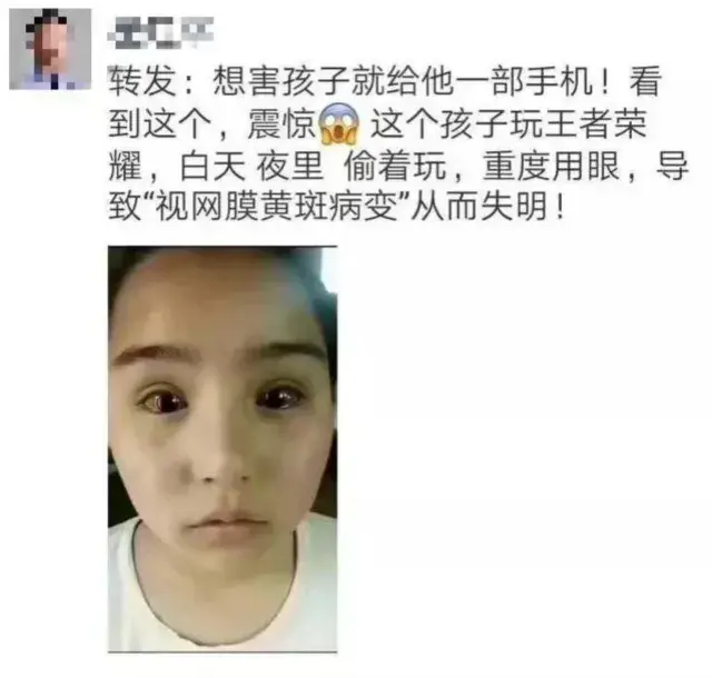 一个孩子沉迷于手机游戏,不分昼夜地玩,因用眼过度导致视网膜黄斑变性,最后竟然失明……