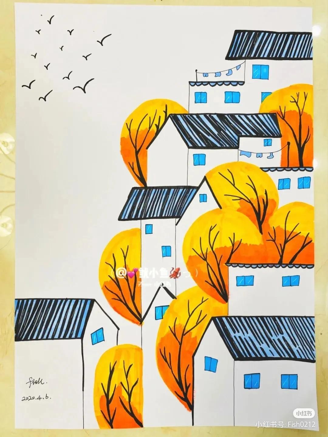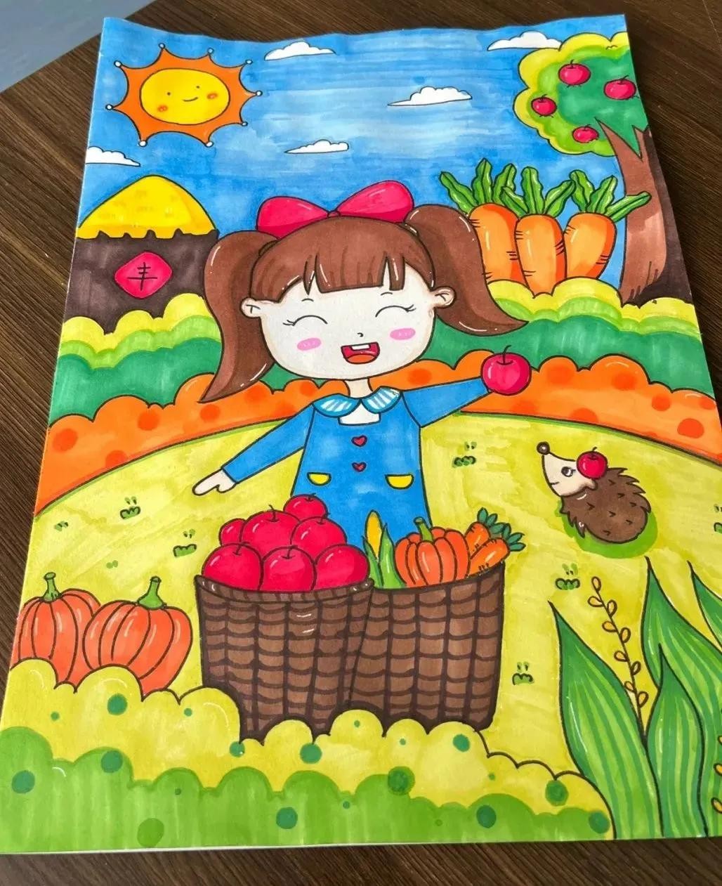 配色惊艳的主题马克笔儿童画,创意满满,享受丰收的喜悦吧!