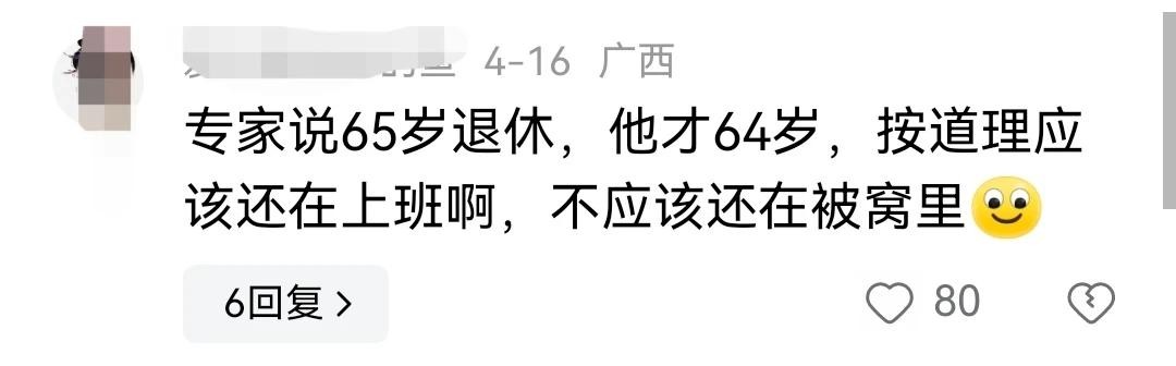 专家说65岁退休,他才64岁,按道理应该还在上班啊!