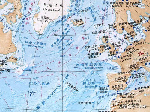 世界地图|大西洋地形地貌航线航运