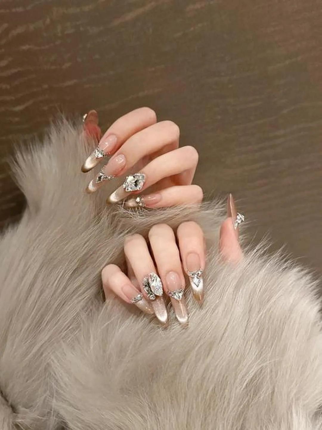 如果你想要更具奢华感的美甲,不妨尝试水晶美甲。通过在指甲上添加水晶或亮片,让你的指尖闪闪发光,仿佛星星一般。这样的设计适合派对或特殊场合,会让你成为众人瞩目的焦点。
