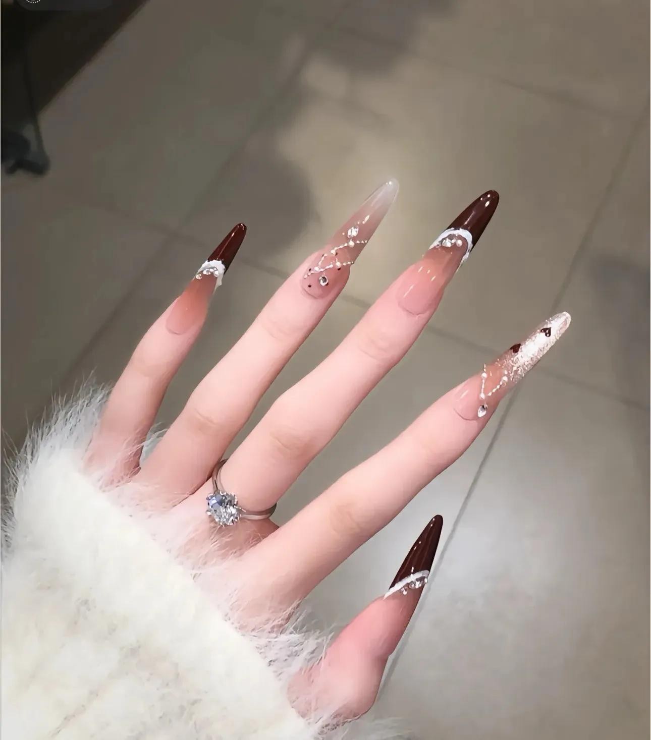 2025年,自然风格的美甲越来越受欢迎。在这个风格中,大地色调的使用尤为突出,比如浅棕色、裸色和草绿色等,这些颜色能够展现出一种亲近自然的感觉。在美甲上加入一些简单的植物图案,如小叶子或花朵,立即让你的指尖充满生机。
