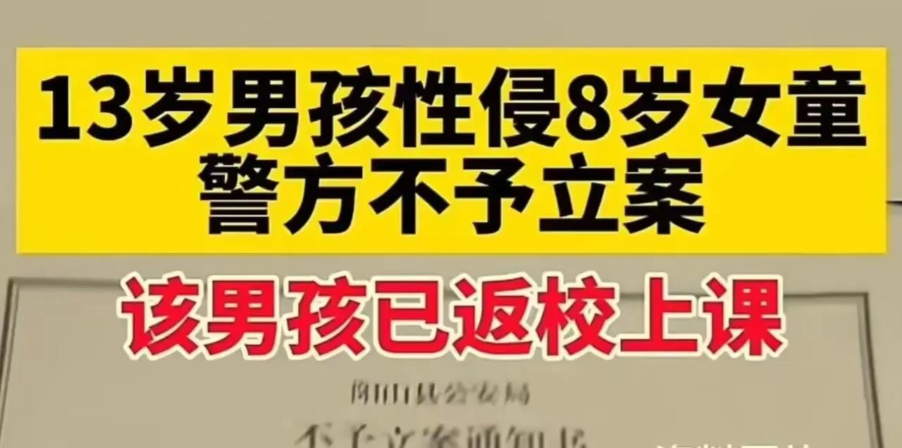 13岁男孩性侵9岁女童.为何他能回校上学而不立案?