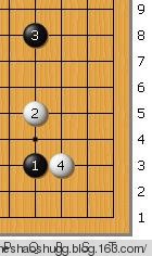 图1-17,白1、3先便宜一下以后再在白5夹,到13的变化。