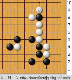 图1-2,白4托角是第一种应法,应该说是不太好的下法。