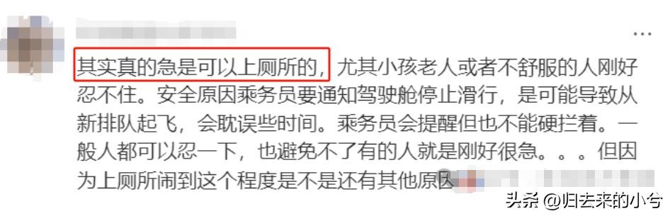 也有的网友认为:“女子的行为确实过于无理取闹,好好的和空姐商量是可以上厕所的。”