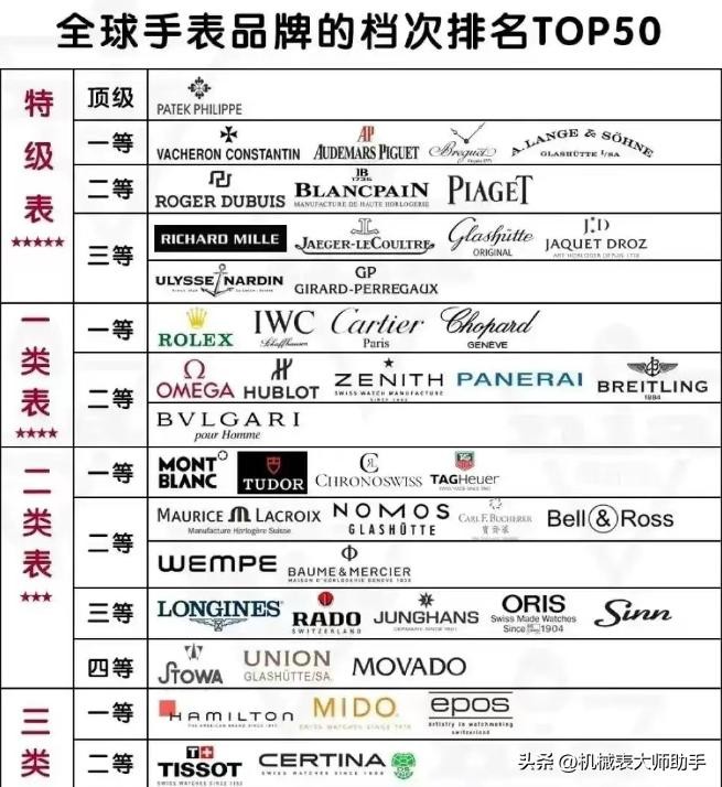 表友们谈论手表的时候,最终都会谈到手表的等级排名。手表的品牌虽然很多,但是能够进入等级排行榜的也就几十个,这样就快速的知道了手表品牌的大概实力。等级排名实际上也是证明手表品牌奢侈程度的依据,毕竟没几个人真的用手表来看时间。那么手表的等级排名都是怎么划分的?每个档次里都有哪些佼佼者?