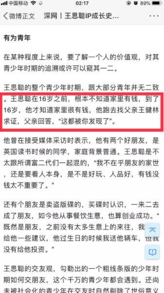 但这么土豪的王思聪,文章中竟说他16岁以前不知道家里是有钱?