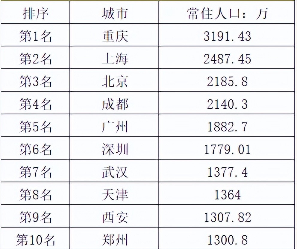 2.城市城市管着农村。城市的本意应该是市区,但我国的城市几乎都不纯粹是市区,就算高度发达的上海市也有农村;北京更多,笔者上学时在怀柔一个山沟的基地里军训,度过了难忘的一段时间,什么都好但丝毫不觉得那是“市”。所以大家都这个样子,重庆只是面积大一点,包进来的农村数量多一些,并无本质不同,我国说的城市都是包含农村的,重庆叫市,重庆全市的人口当然可以排名,作为我国人口第一大城市。