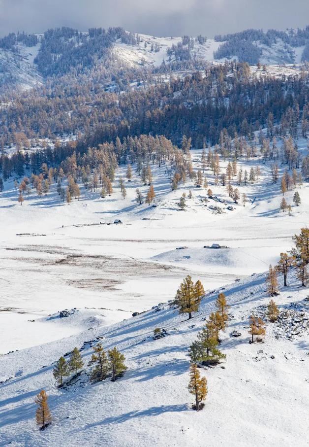说到北国风光,那一定不能少了喀纳斯。下雪后的喀纳斯处处都是银装素裹,放眼望去都是苍茫的雪景,那场面十分壮观。