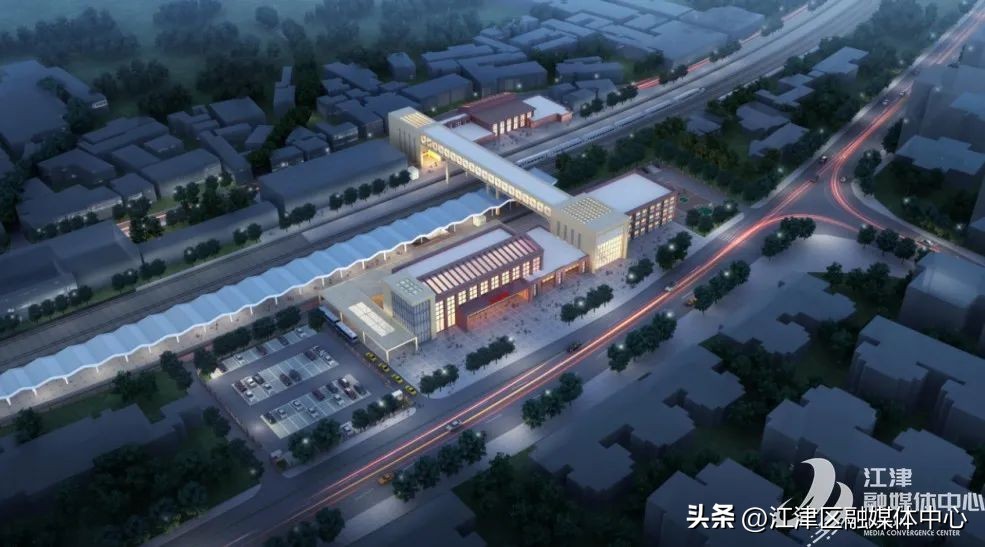 江津站位于德感片区(原江津站位置),新建站房建筑面积1626平方米,市政配套设施工程主要包含站前广场、交通换乘通廊、跨铁路线城市通廊、公交及即停即走区等。