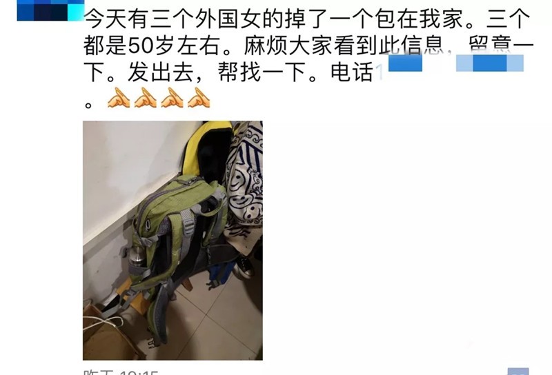 “今天下午6点左右,有三个外国女性来我店里借用厕所,因为语言不通,我就拉朋友来帮忙翻译,整个过程大家聊得很愉快,她们还问了关于凯里周边景区的路线,哪知道离开时,她们却忘记拿包走了。”该店老板娘罗女士向特巡警讲述了事情经过。她继续说道:“看到包包掉落在了店里,害怕她们里面用重要的护照或者其他东西,我赶忙跑下去找人,足足等了十多分钟,也没人回来拿,我只有一边发朋友圈寻找,一边求助警方。”