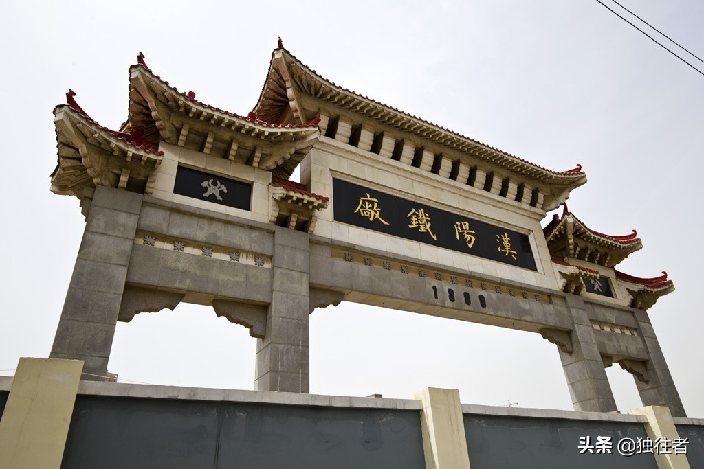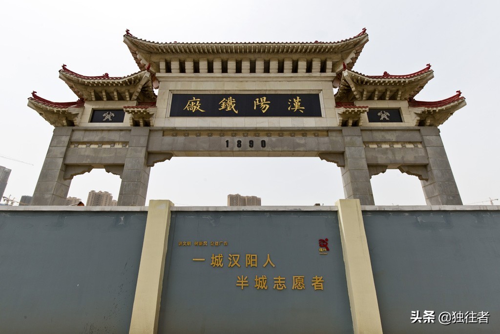 汉阳铁厂遗址在现今武汉市汉阳区琴台大道。可惜我们来到“汉阳铁厂”的遗址时却发现遗址已被高高的围墙所封闭。原汉阳铁厂门前,上书“汉阳铁厂”四个繁体字的门楼也被挡在了围墙内,只能站在围墙外仰望它的雄姿。围墙外的售楼处正在热火朝天地接待着客户,似乎这里正在进行着商业改建,期待这个改建能更多地保留原铁厂的建筑规模,毕竟“汉阳铁厂”是中国近代工业兴起的标志。
