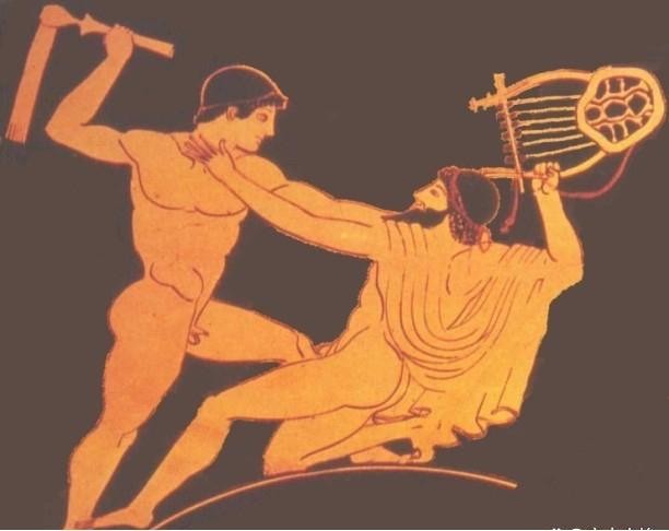 有一次,音乐老师利诺斯(他是阿波罗的私生子,之前讲到的大名鼎鼎的俄耳甫斯的弟弟)看到赫拉克勒斯不愿学习,气得打了他一下。小赫随手一挡,没想到自己的力气这么大,竟然把老师给打死了。