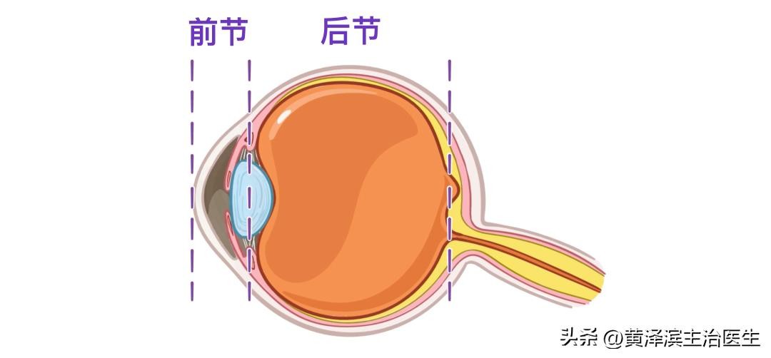 角膜和晶状体帮助我们勾画出眼睛的前、后两部分,即眼前节和眼后节。眼前节位于角膜和晶状体之间,眼后节位于晶状体和视网膜之间。