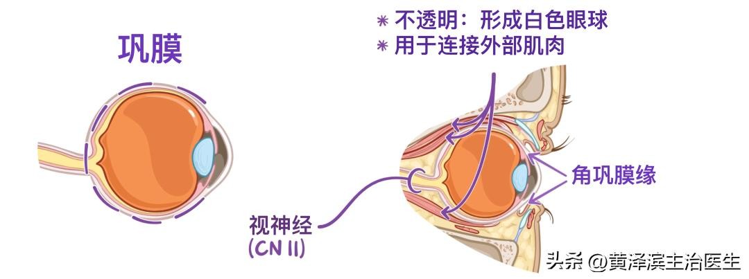 它占据眼球后部的大部分,用于连接眼球的外部肌肉。同时,眼球后端的视神经会会穿过巩膜。