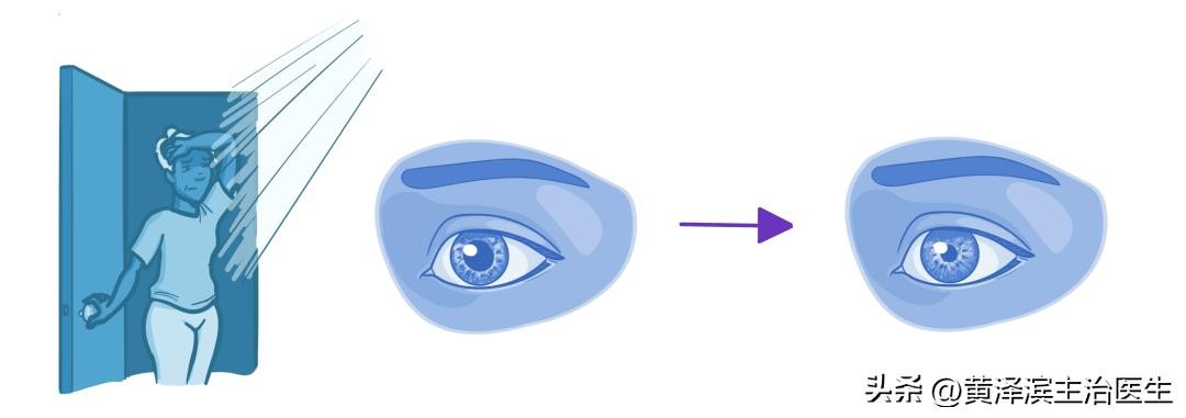 这是因为当你在相对黑暗的室内学习时,你的眼睛已经习惯了低亮度,所以突然进入视网膜的过多的光线会引起不适。瞳孔直径随之减小称为瞳孔缩小。