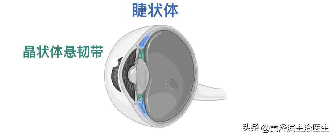 睫状体是增厚的血管层,由血管和平滑肌组成,将脉络膜层附着在虹膜的周围。睫状体的内表面有被称为睫状突的组织,它是晶状体悬韧带的附着物,可以保持晶状体的位置,同时也分泌房水,充满眼球的前房。