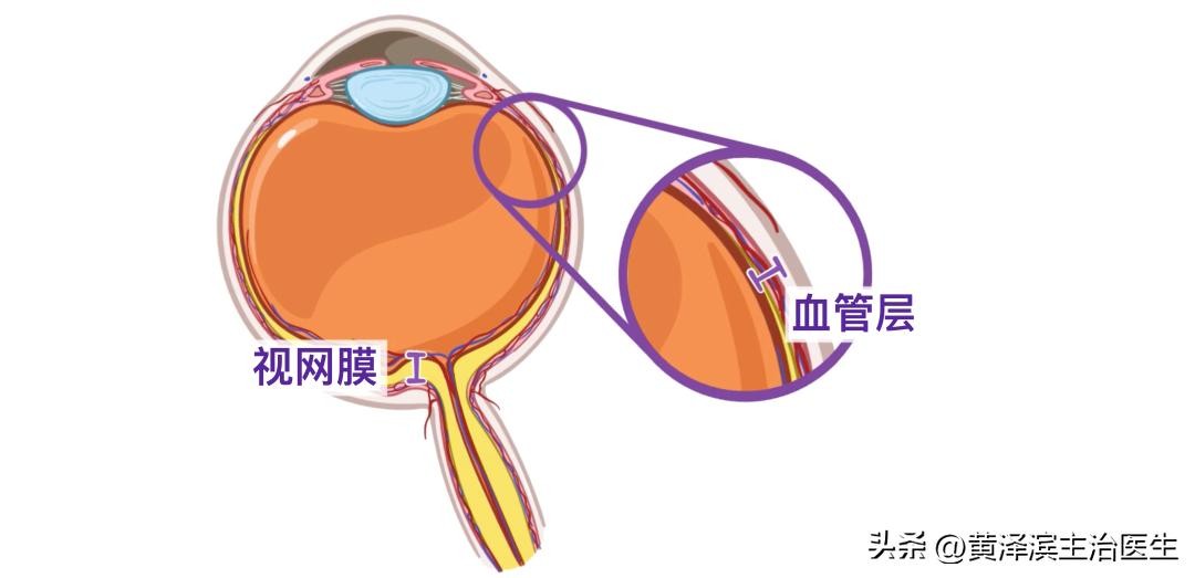 脉络膜由两层血管组成,这两层血管为上面松散附着的巩膜和下面牢固附着的视网膜提供血液供应。