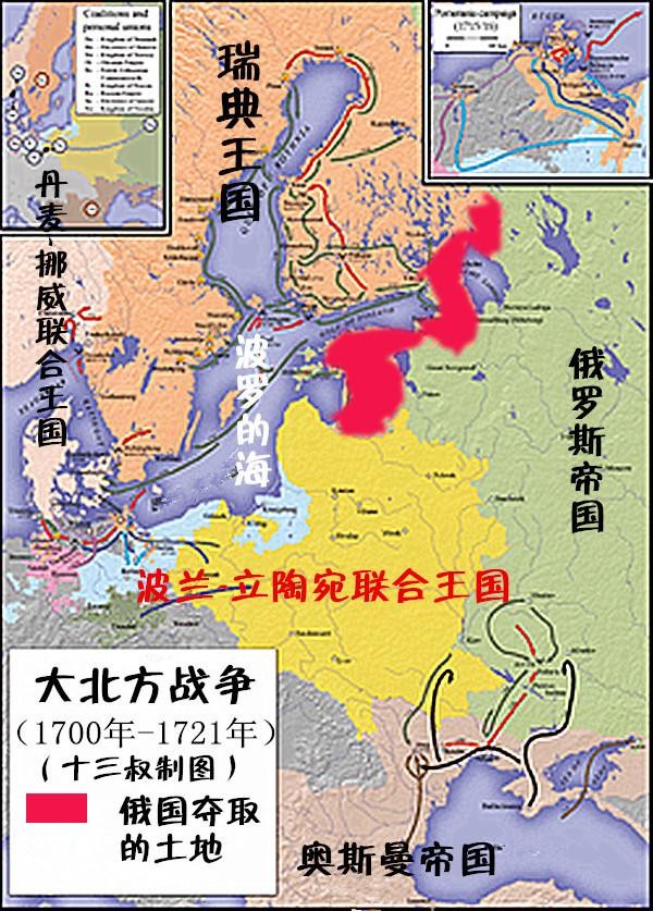 也正是在此期间,俄罗斯得到了通往波罗的海,黑海和里海的通道。这就使得俄罗斯挑战瑞典的波罗的海霸权