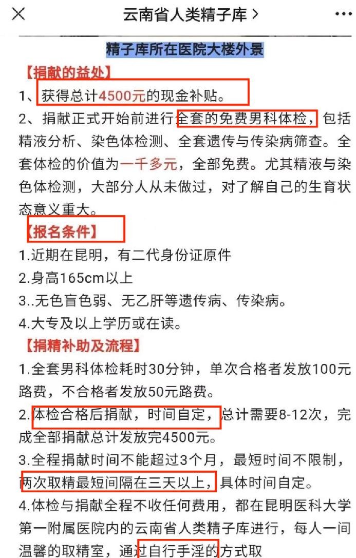 对于他来说,面对7500块钱的补贴并不足为奇,他主要目的是想了解一下自己的精子质量是如何,于是他便报名参加了捐精计划。