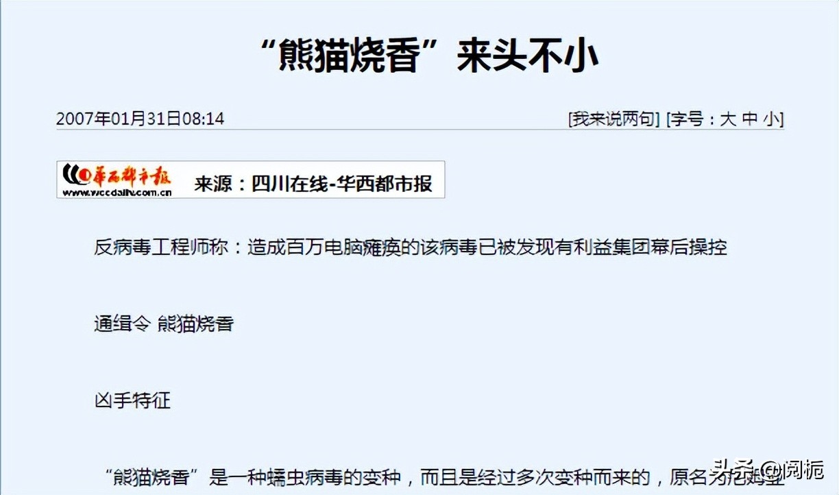 由于中毒的电脑屏幕上会出现熊猫捧着三炷香的图案,所以人们称之为“熊猫烧香”,虽然名字听起来呆萌可爱,但是破坏力却极大。
