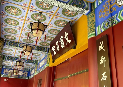 文翁石室最初是什么模样呢?《华阳国志》中是这样记载的,“文翁立文学精舍、讲堂石室(一名玉堂)于城南,开二堂,左为温故,右为时习,复作周公礼殿,画孔子像。”
