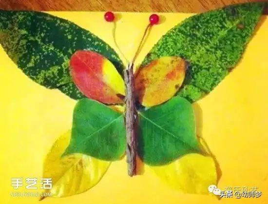 叶子、树枝和果子做的蝴蝶。