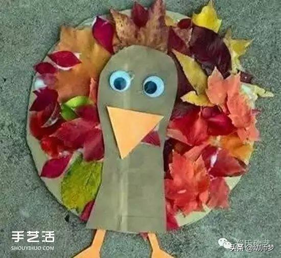 卡纸和枫叶做的孔雀。