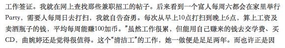 她说,她一直坚持一个原则,就是坚决不动用妈妈的钱来搞音乐,“清洁工”的工作,一做就是两年。