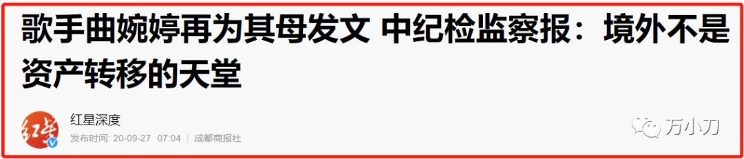 2020年9月27日,中纪委网站评曲婉婷母亲张明杰案:境外不是资产转移天堂。