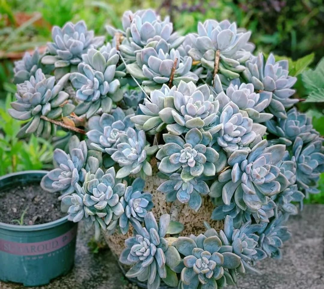 玉蝶,多肉中莲座最大的一种,直径达到20公分,叶片形状规整,犹如人工雕刻一般精致,而且叶片排列紧密,叶质硬挺有玉石光泽,盆栽看起来高雅又具神秘气息,美就一个字。