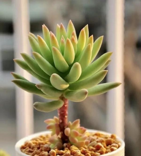 淡雪是很多人喜欢的一个多肉品种,很多人都说它清新淡雅,出状态像淡淡的雪一样清丽脱俗,因为淡雪出状态的时候叶片会变成半透明,叶色呈现淡淡的橙色,再加上叶片细腻白粉的映衬看着有点粉妆玉琢的仙气。