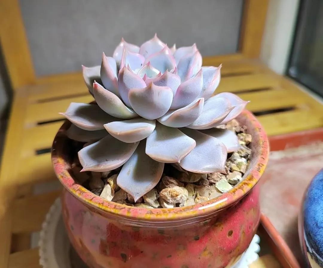 欧菲娜叶色非常多变的品种,不同季节可呈现粉白色、粉红色、粉蓝色、粉紫色等多种色调,夏天会变紫。