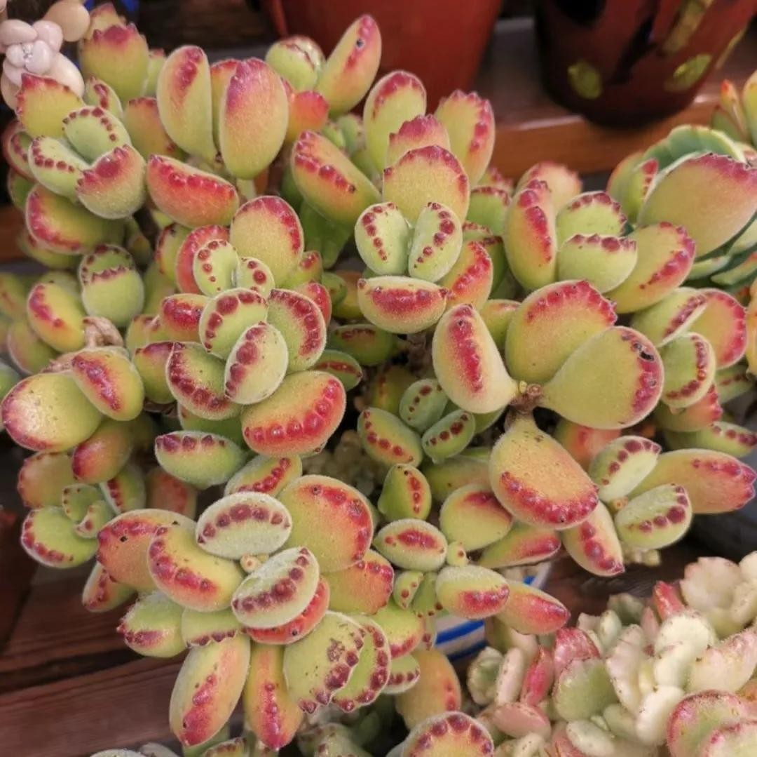 该种多肉叶形叶色较美,花朵玲珑小巧,叶片形似小熊的脚掌,形态奇特,十分可爱,观赏价值很高。