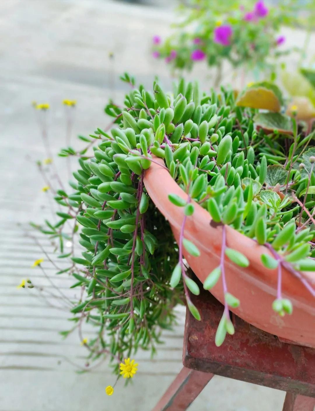 五十铃玉株型玲珑有趣,密集成丛的肉质棒状叶片几乎垂直向上生长,十分奇特;夏末至秋开出雏菊状金色花朵,亮丽而素雅。