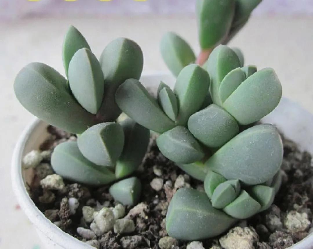 婴儿手指和桃蛋与桃美人长得很相似,只不过这一款多肉,它的叶片是成长椭圆形状的。