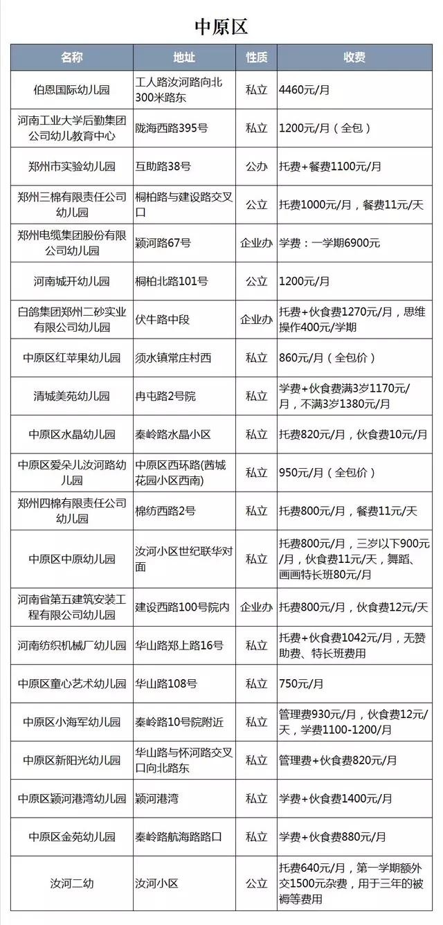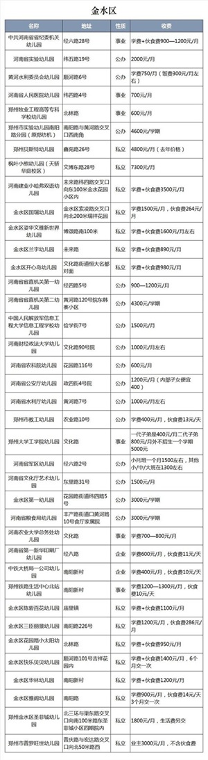 郑州大学工学院幼儿园:属于公立市二级幼儿园,因为是郑州大学自己的幼儿园,所以基本只招收子弟,最近几年也招收部分关系户。