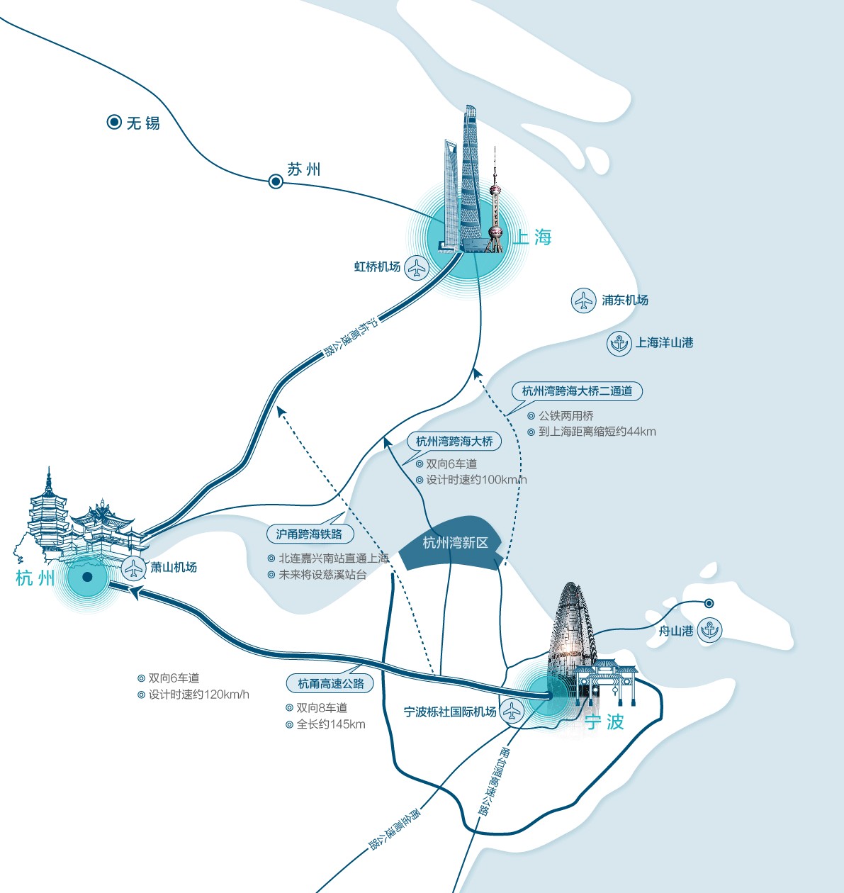 宁波杭州湾新区是中国沿海地区十分难得的战略要地,两小时交通圈内可覆盖中国人口最密集、经济发展速度最快、生活水平最高的地区(未来会压缩到1小时甚至半个小时)。