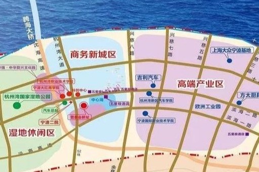 宁波杭州湾新区位于宁波市的北部,杭州湾跨海大桥的南岸。
