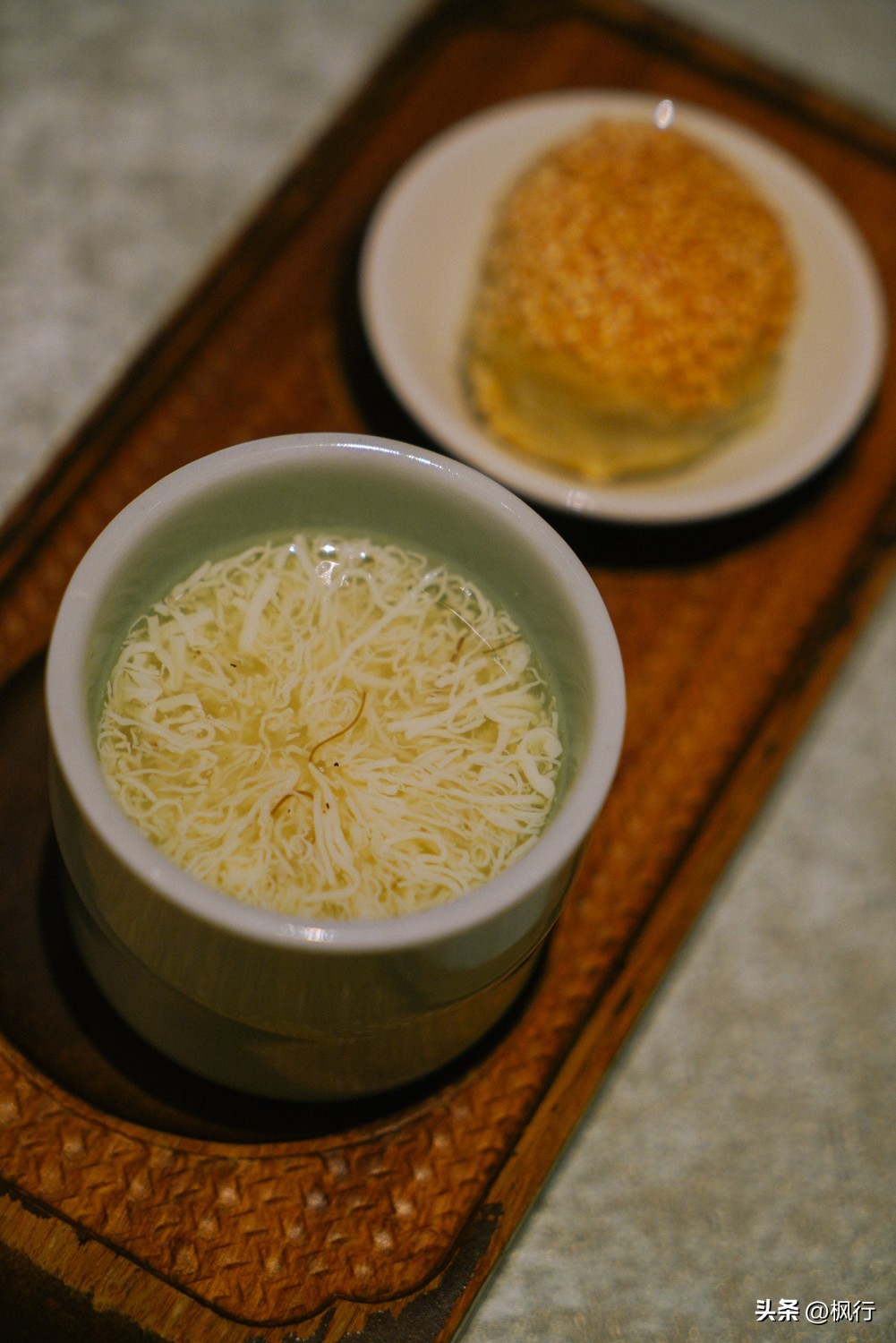 豆腐羹细腻丝滑,极尽中式刀工的厉害。