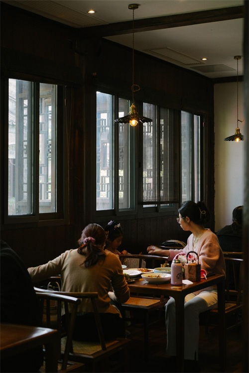 挨着二楼就餐区临街的窗户坐下,抬头就是春意盎然的绿色街景。