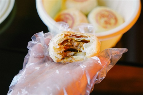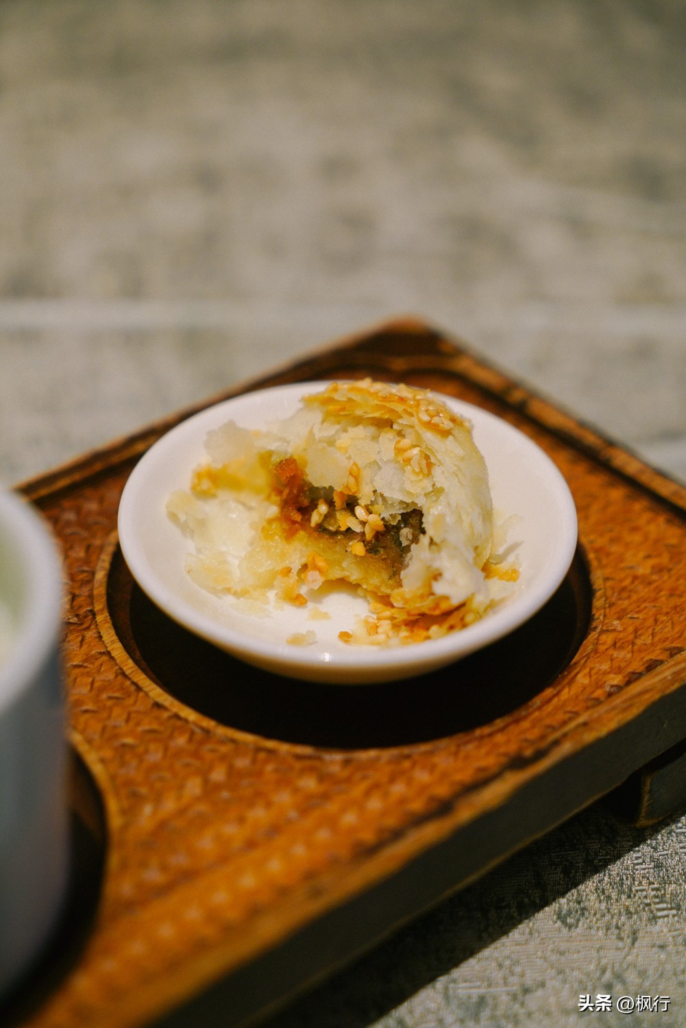 等位的时候点了一份新出炉的鲜肉月饼,酥皮+新鲜柔软的内馅儿,热乎乎的酥香。