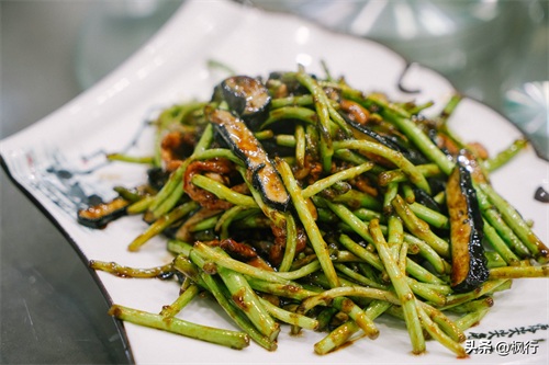 春天的野芦蒿也可以用臭干炒啊。喜食“臭”的人不要错过。隔壁一个很有派头的先生,一人食。也点了这道菜,走的时候臭干全部吃掉,倒是里面翘的肉丝全部剩下。