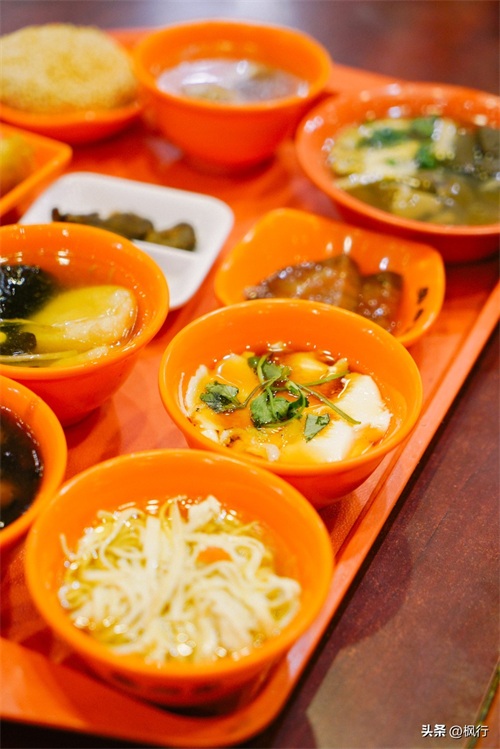 永和园的分量不大,每种有一小碗或者一个,2个人吃绰绰有余。鸭血粉丝汤、五香豆、开洋干丝不算精致,但的确是南京的寻常味道。