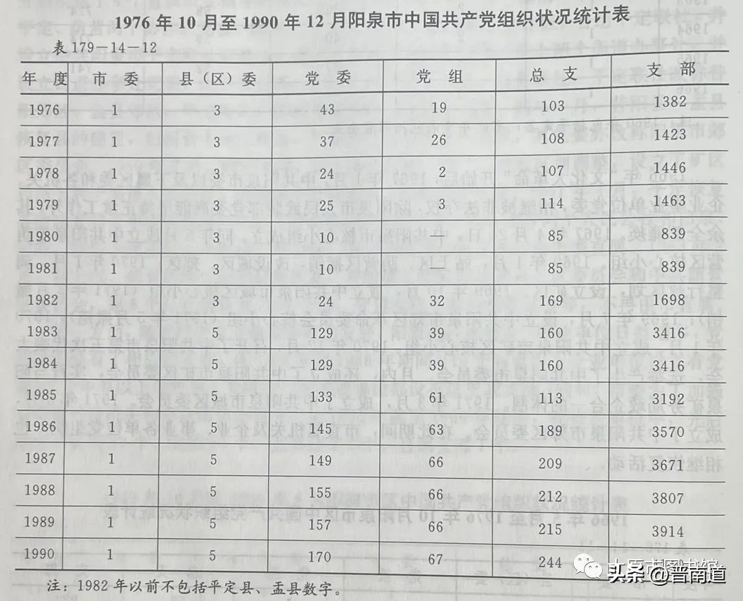 图为1976年10月至1990年12月阳泉市中国共产党