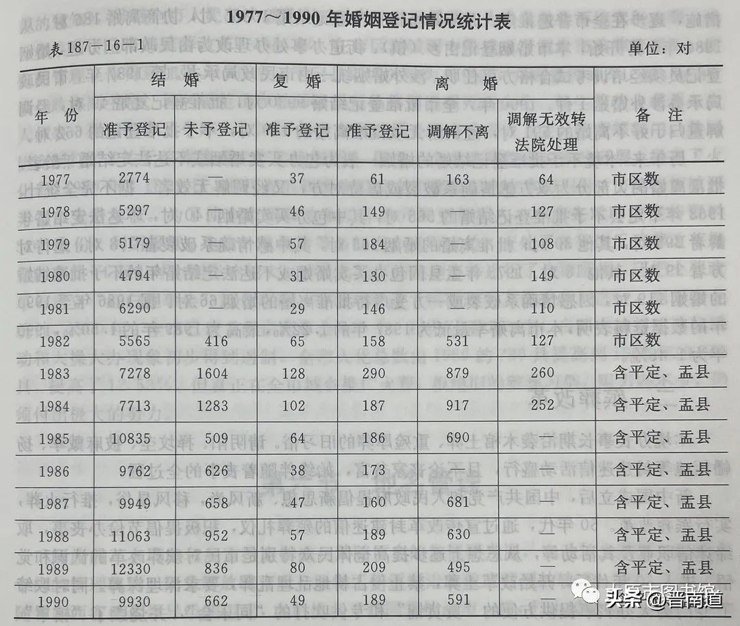 图为1977-1990年婚姻登记情况统计表