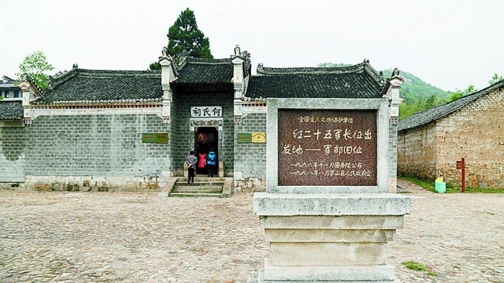 距长岭岗不远,便是罗山何家冲。大战之后,红二十五军便以此作为游击战争的根据地。村中有一栋占地约400多平方米的明代建筑,它就是全国重点文物保护单位何氏祠。