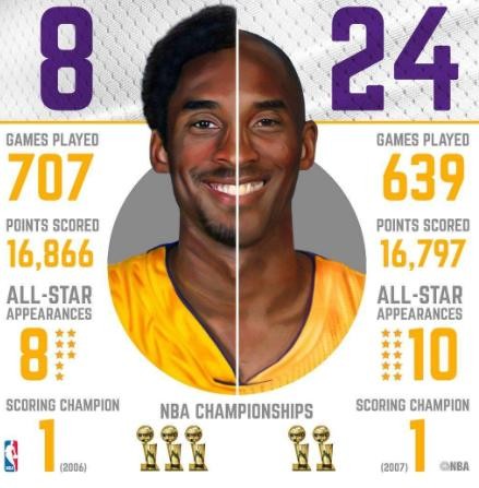 在NBA有过许多著名的号码,例如身穿23号的乔丹和詹姆斯,穿3号的艾弗森和韦德,但在NBA历史中有一个人却比较特殊,他穿过的2个号码都给人留下深刻的印象,他就是湖人队名宿科比-布莱恩特。