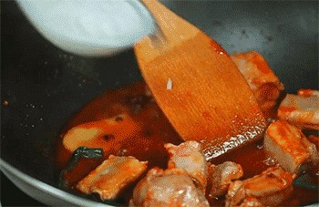 11、加入糖入味,大火炖至水开后,改为小火炖35分钟。中间要翻炒几次,以免粘锅。煮好后装盘即可。
